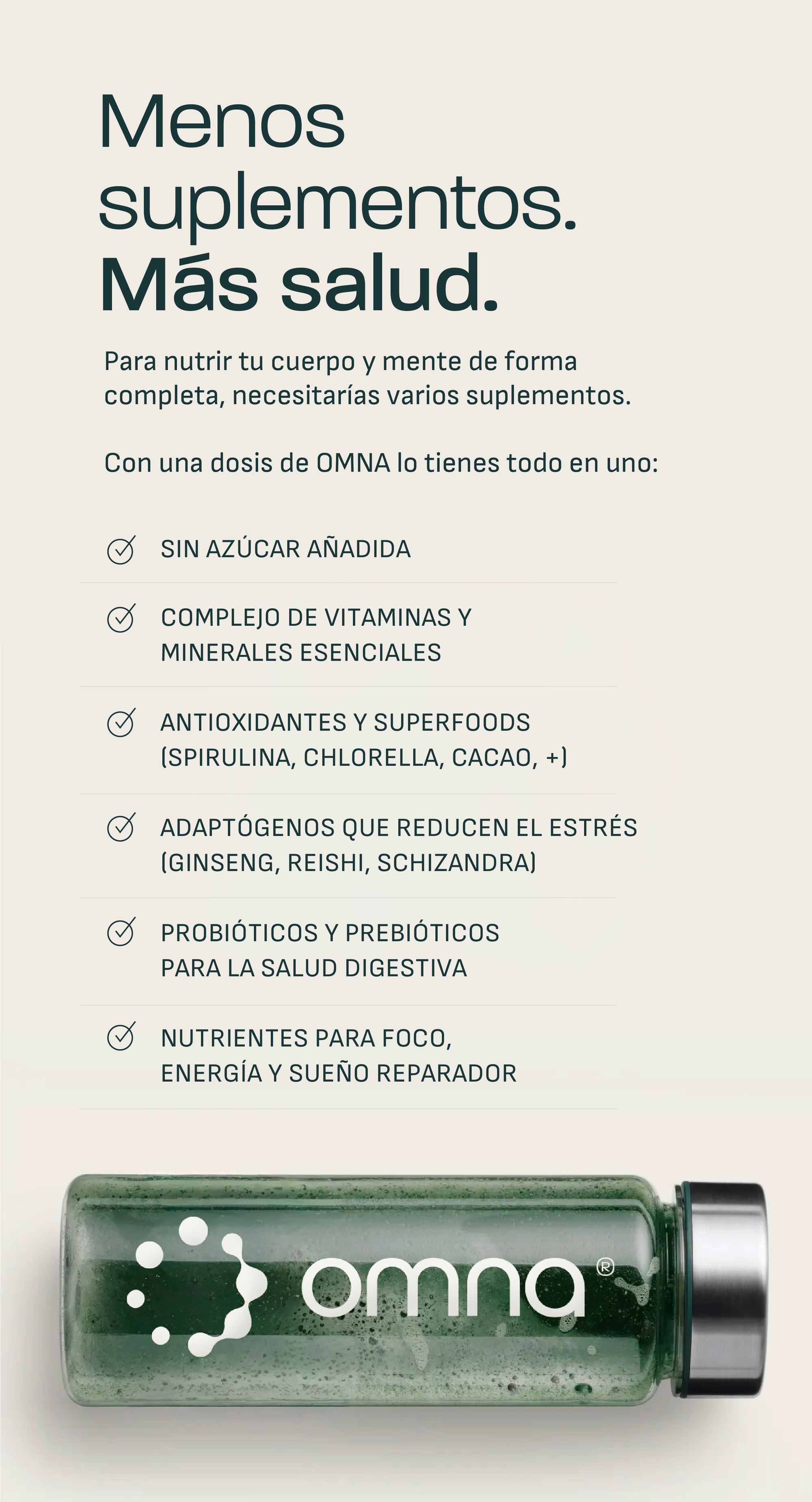 OMNA Superblend es un suplemento en polvo con más de 44 ingredientes funcionales.
