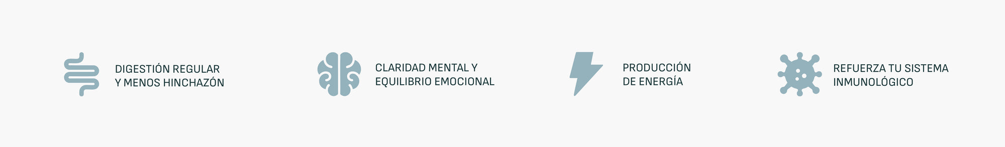 Contiene adaptógenos, superfoods, vitaminas, minerales, prebióticos y probióticos.